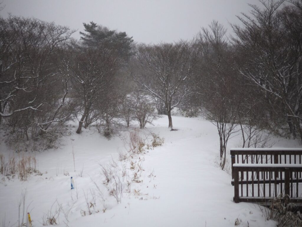 およそ25cmの積雪です!スノーシューでの散策が可能です。レンタルはオープンしておりますので