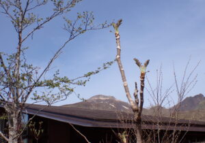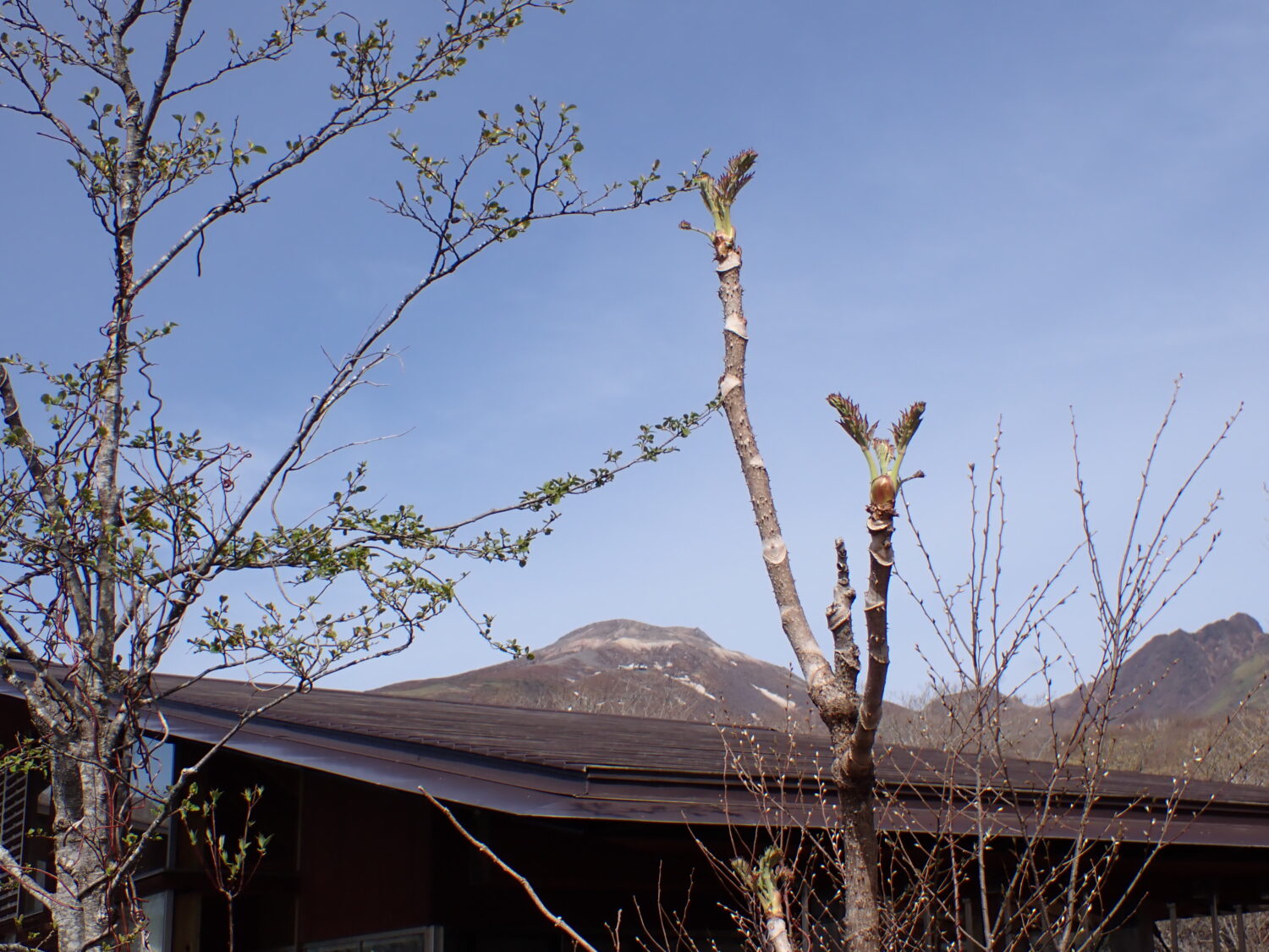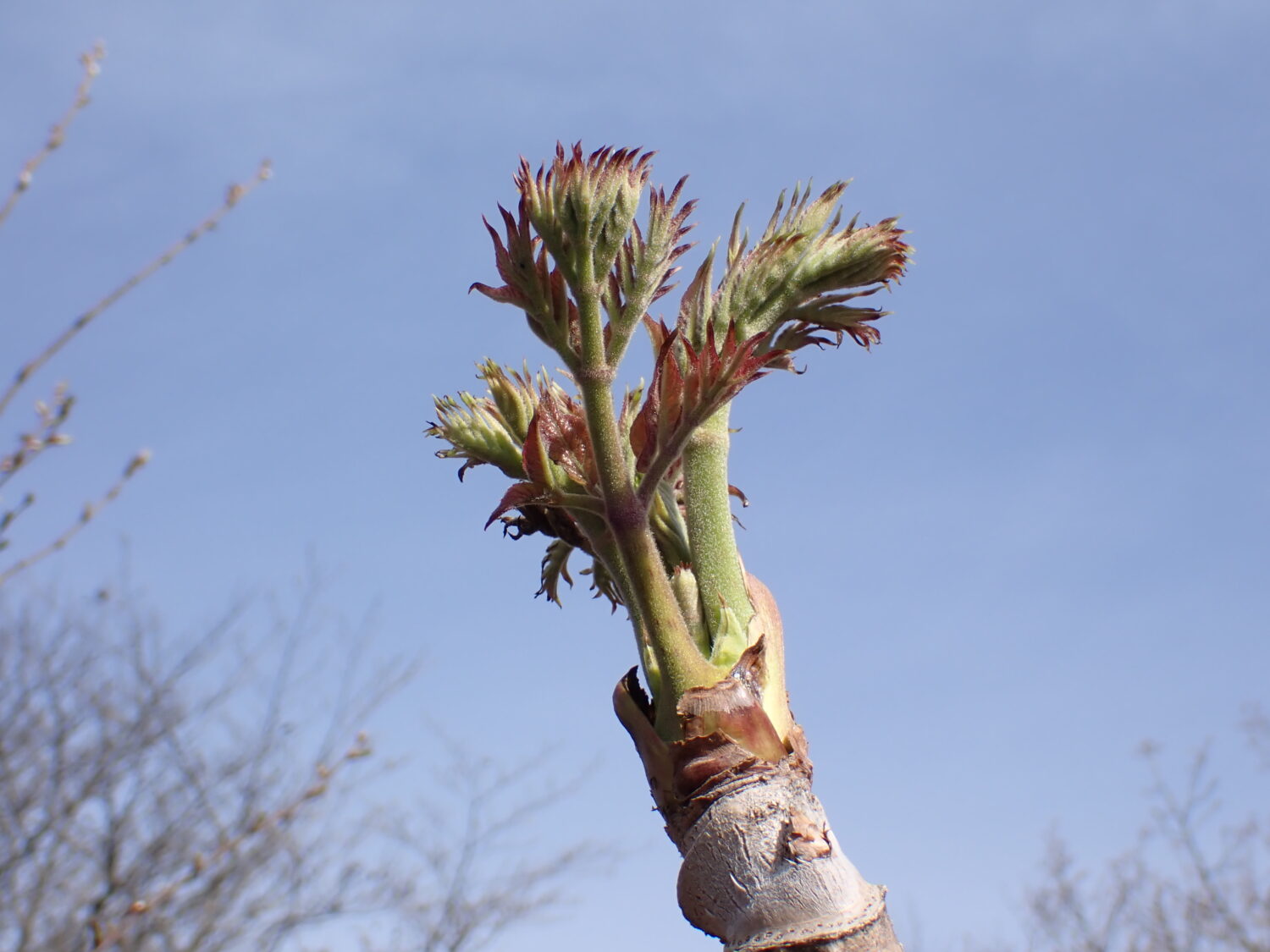 青空に輝くタラの芽、昔は飢饉対策にも使われたというリョウブ、