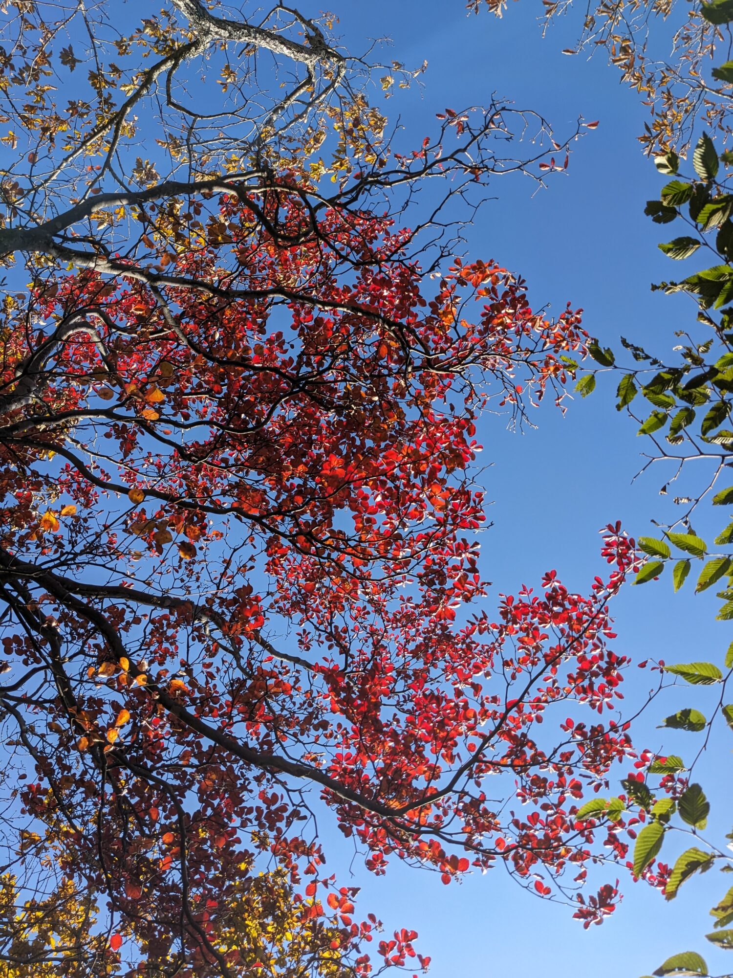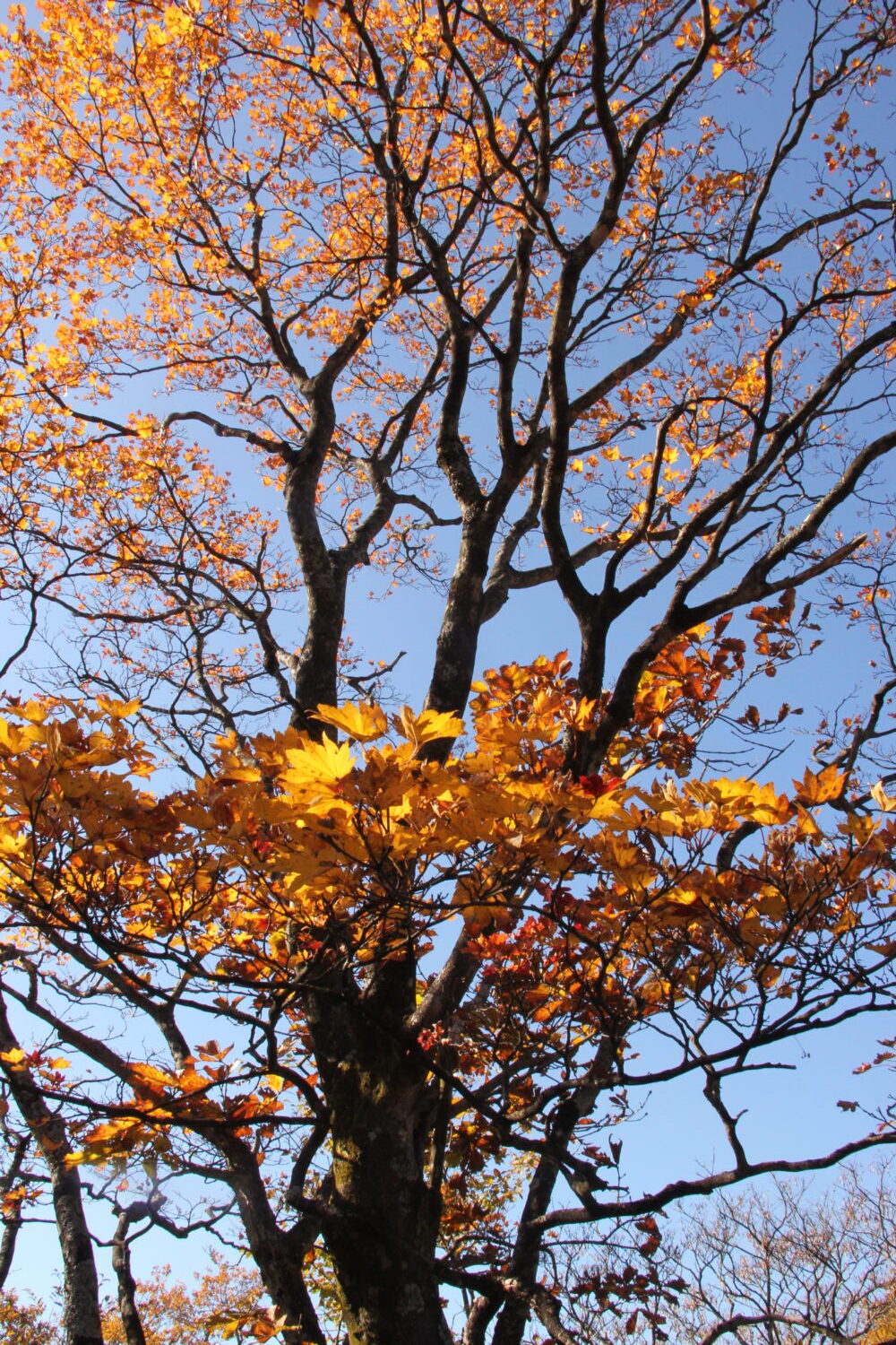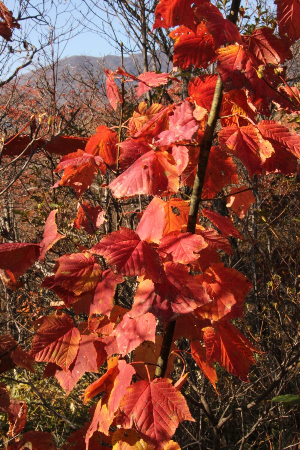 駒止の滝周辺を見回してもカエデ類、ツツジ類、サクラにアオハダ・・・様々な樹種が紅、黄と色付いており、青空を背景にしてとても美しかったです。