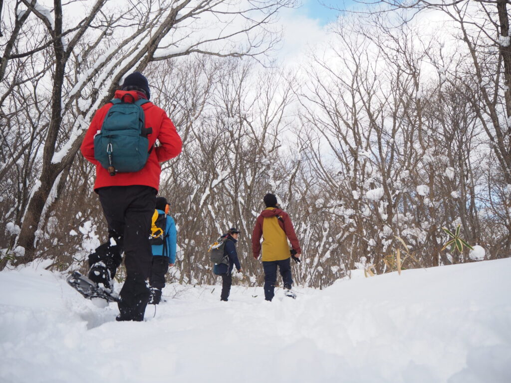 スノーシューを使って雪の上をザクザクと進みます。履き方・歩き方レクチャーもあるので初めての方でも参加できます。冬季は特別編としてナイトプログラム(夜のスノーシュー)も行います。